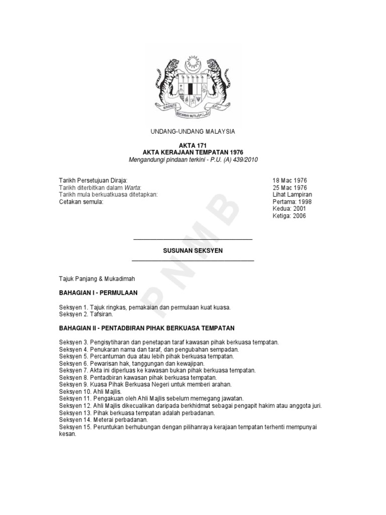 Akta Kerajaan Tempatan 1976 Akta 171 English