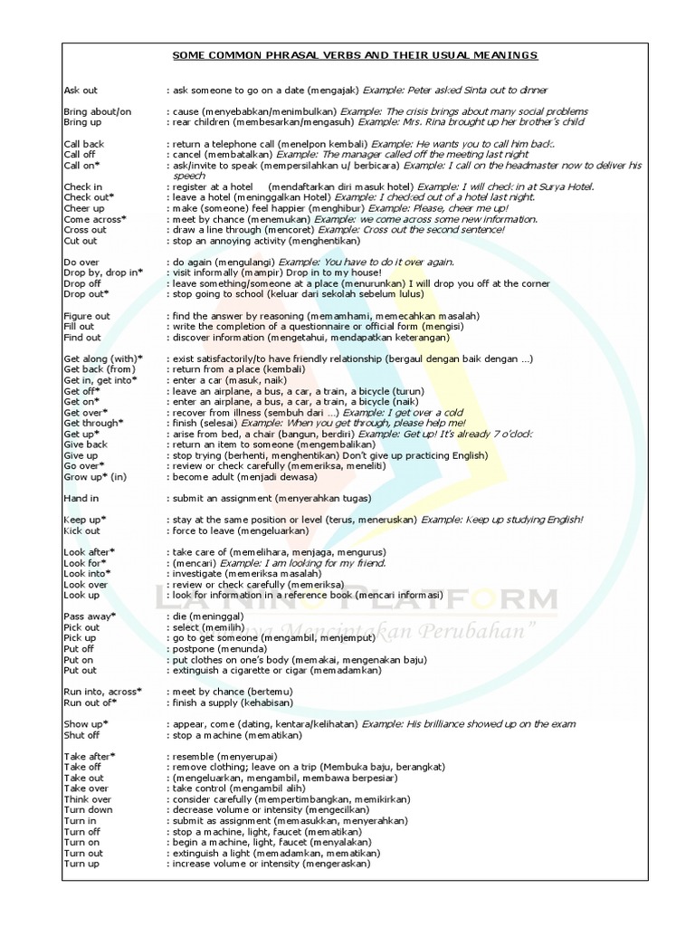 Some Common Phrasal Verbs And Their Usual Meanings
