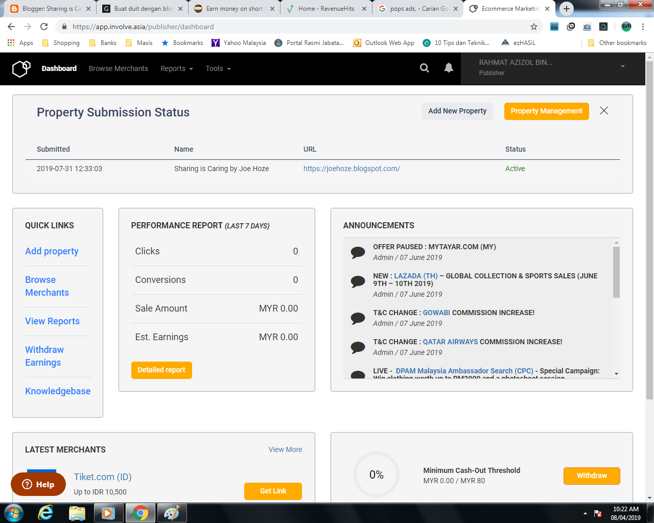 Income Hasil Buat Duit Dengan Adsense Blog March 2020 Myrujukan