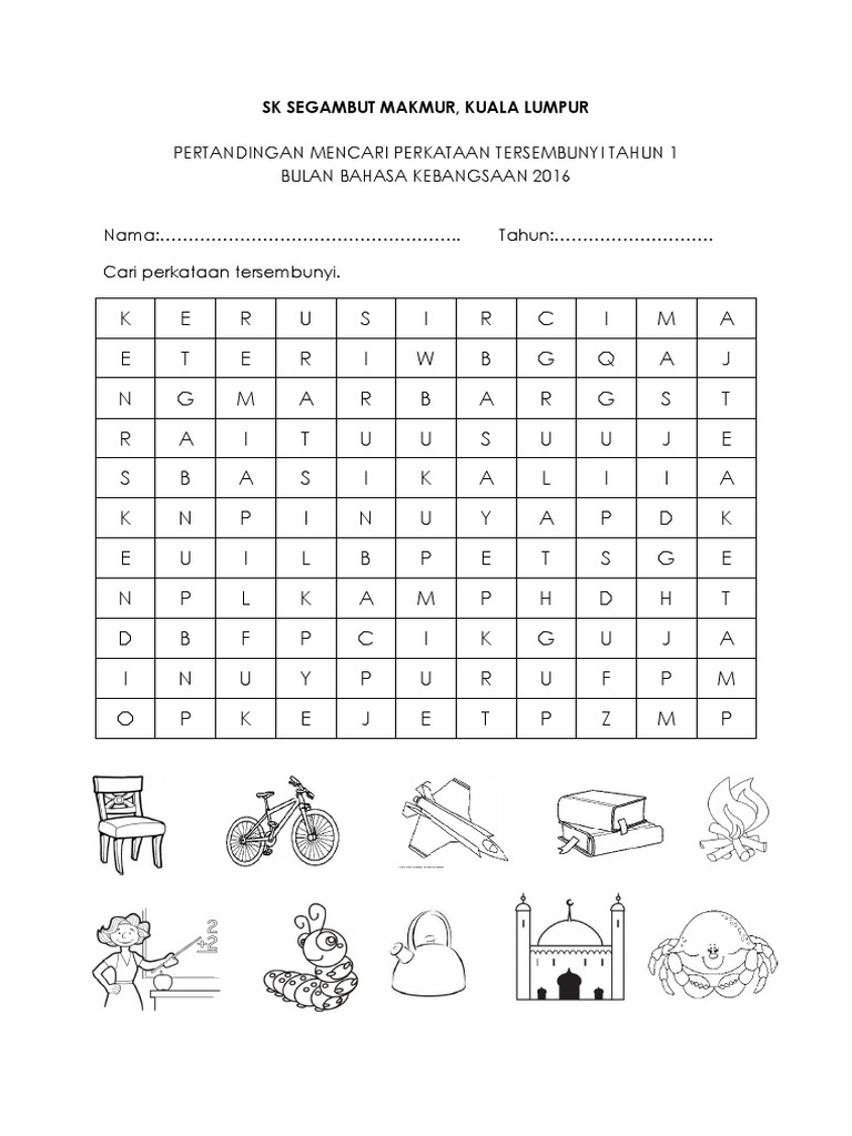 Cari Perkataan Tersembunyi Bahasa Melayu Tahun 5