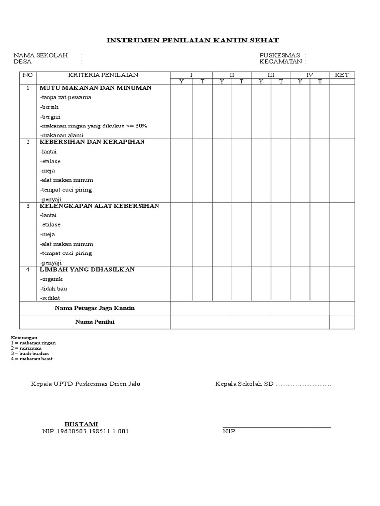 Instrumen Penilaian Kantin Sehat