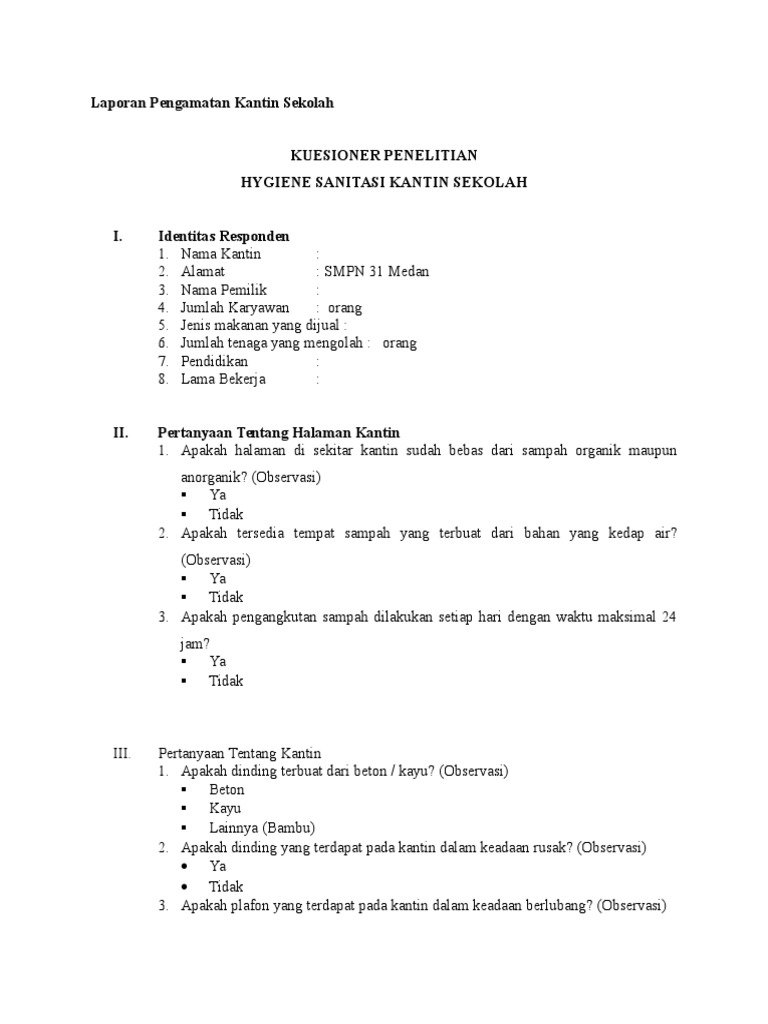 Laporan Pengamatan Kantin Sekolah