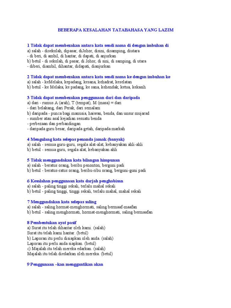 Bahasa Melayu Kontekstual Kesalahan Tatabahasa Morfologi