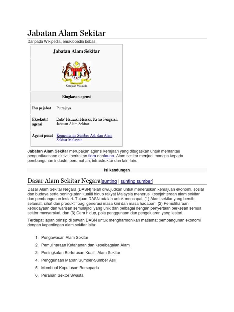 Jabatan Alam Sekitar Malaysia Wikipedia