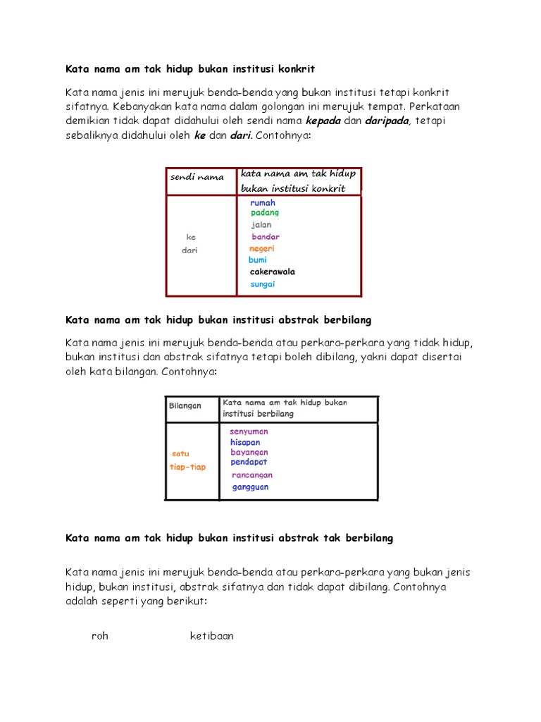 Play this game to review world languages. Kata nama am tak hidup bukan institusi abstrak tak berbilang. Kata nama am tak hidup bukan institusi abstrak berbilang. Bolehlah kiranya sudi cikgu cikgu muat turun dan tampal di dalam kelas masing masing juga.