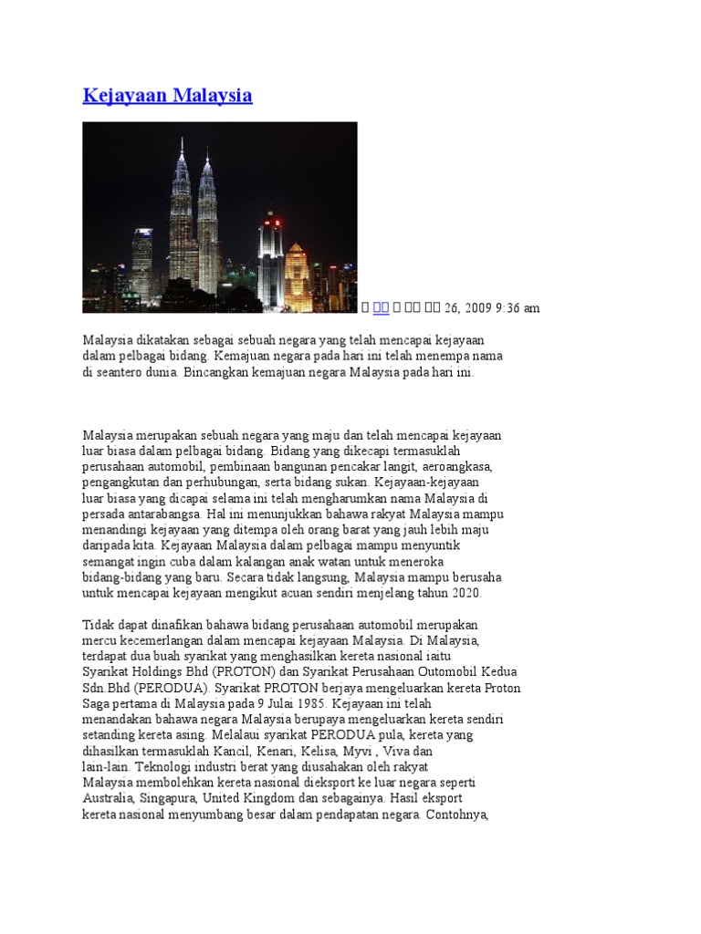 Kejayaan Malaysia Dalam Pelbagai Bidang
