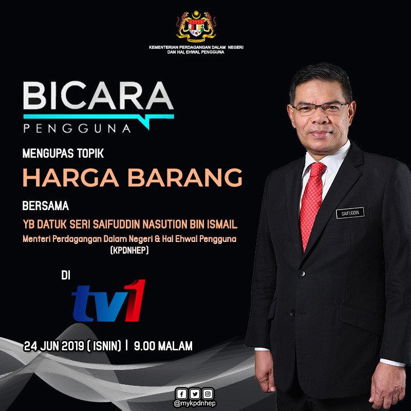 Mykpdnhep On Twitter Jangan Lupa Tonton Bicara Pengguna Bersama Yb Datuk Seri Saifuddin Nasution Ismail Menteri Kpdnhep Pd 24 Jun 2019 Isnin Di Tv1 Jam 9 00 Malam Bagi Mengupas Topik Berkenaan Harga