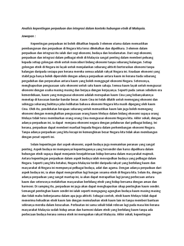Analisis Kepentingan Perpaduan Dan Integrasi Dalam Konteks Hubungan 1