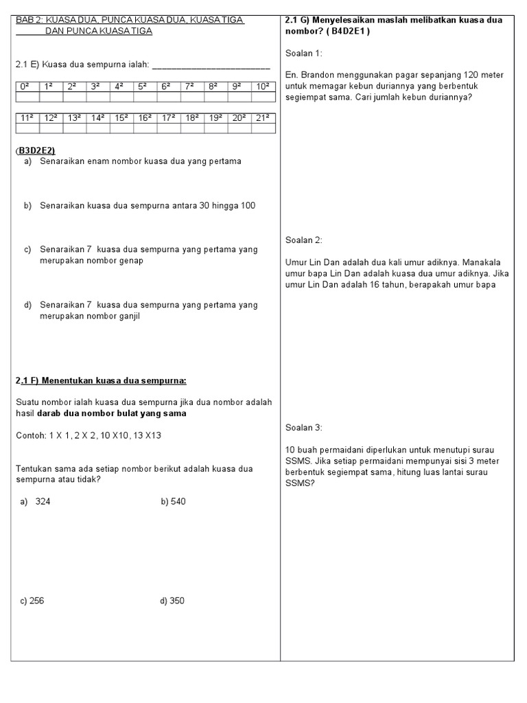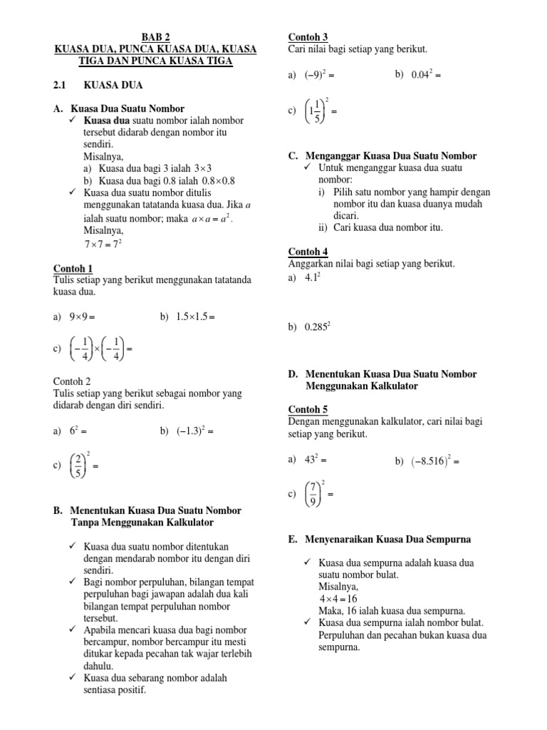 Bab 2 Kuasa Dua Punca Kuasa Dua Kuasa Tiga Dan Punca Kuasa Tiga