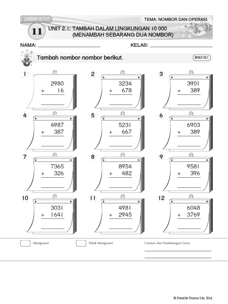 Sudut Matematik Lembaran Kerja 3 Operasi Tambah