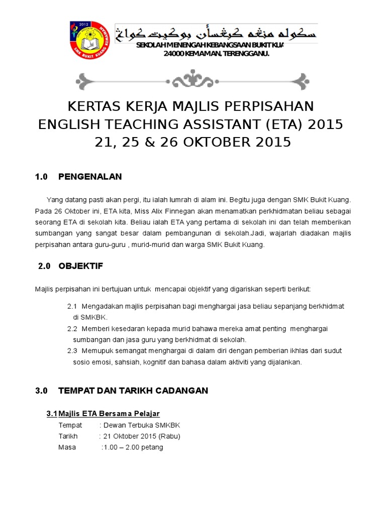 Kertas Kerja Majlis Perpisahan