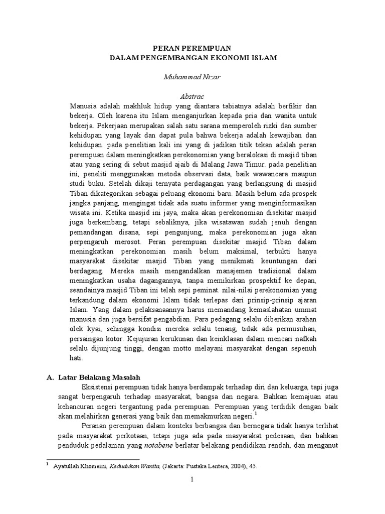 Peranan Perempuan Dalam Pengembangan Ekonomi Islam Pdf
