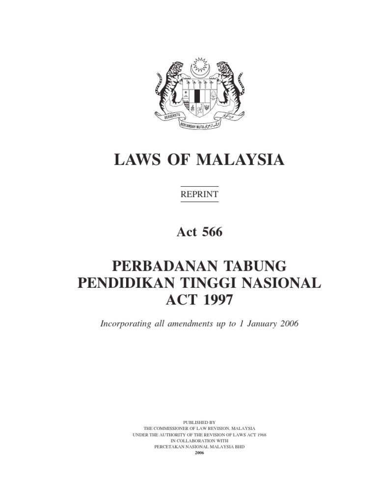Akta Perbadanan Tabung Pendidikan Tinggi Nasional 1997 Akta 566 Pnmb2u