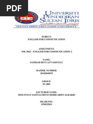 Fik 3042 English For Communication 2 Reading Process Classroom