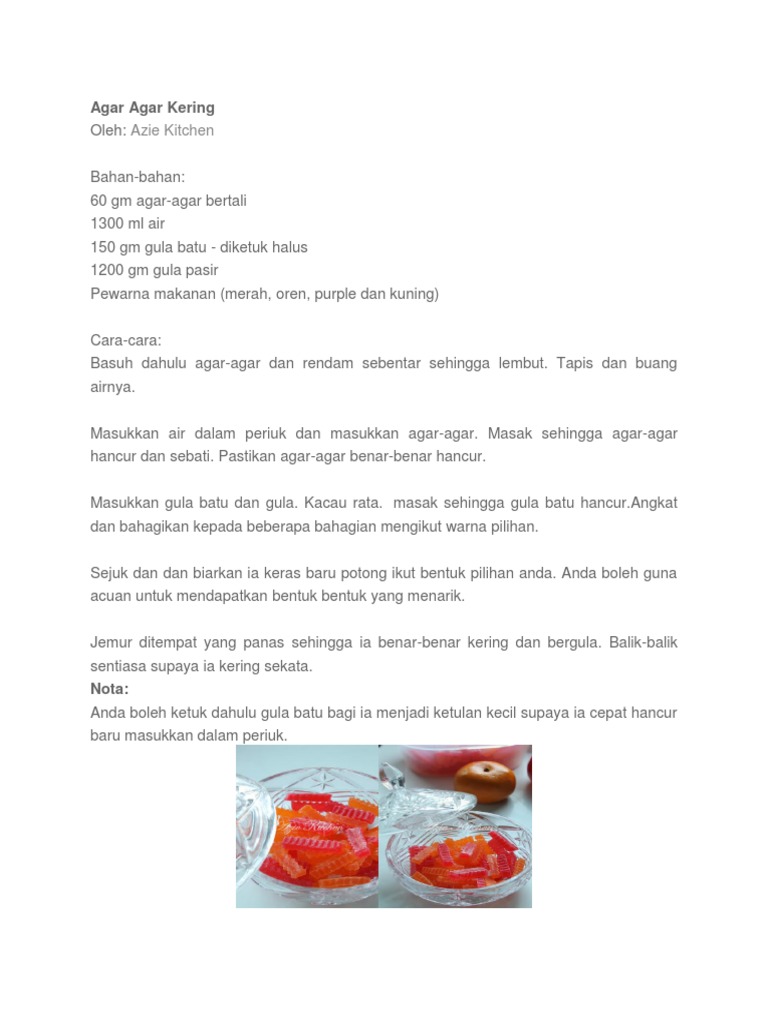 Resepi Agar Agar Kering Azie Kitchen