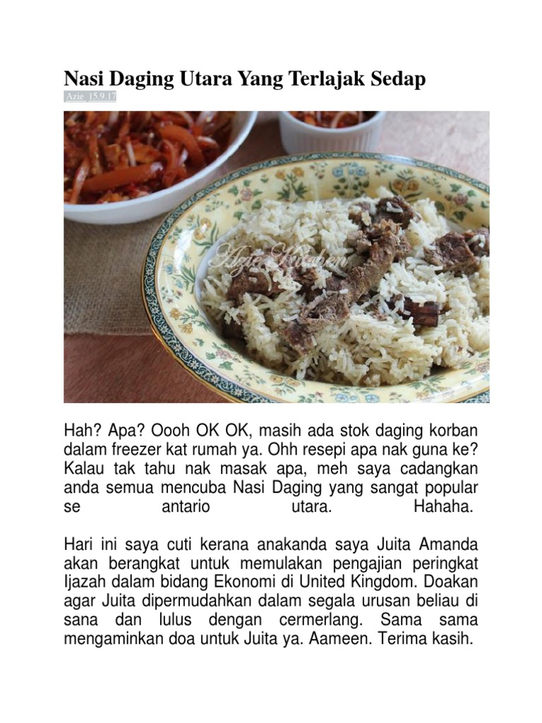 Nasi Daging Utara Yang Terlajak Sedap Azie Kitchen
