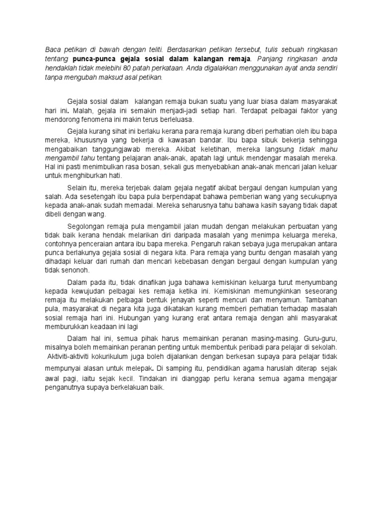 Ringkasan Punca Punca Masalah Sosial Dalam Kalangan Remaja